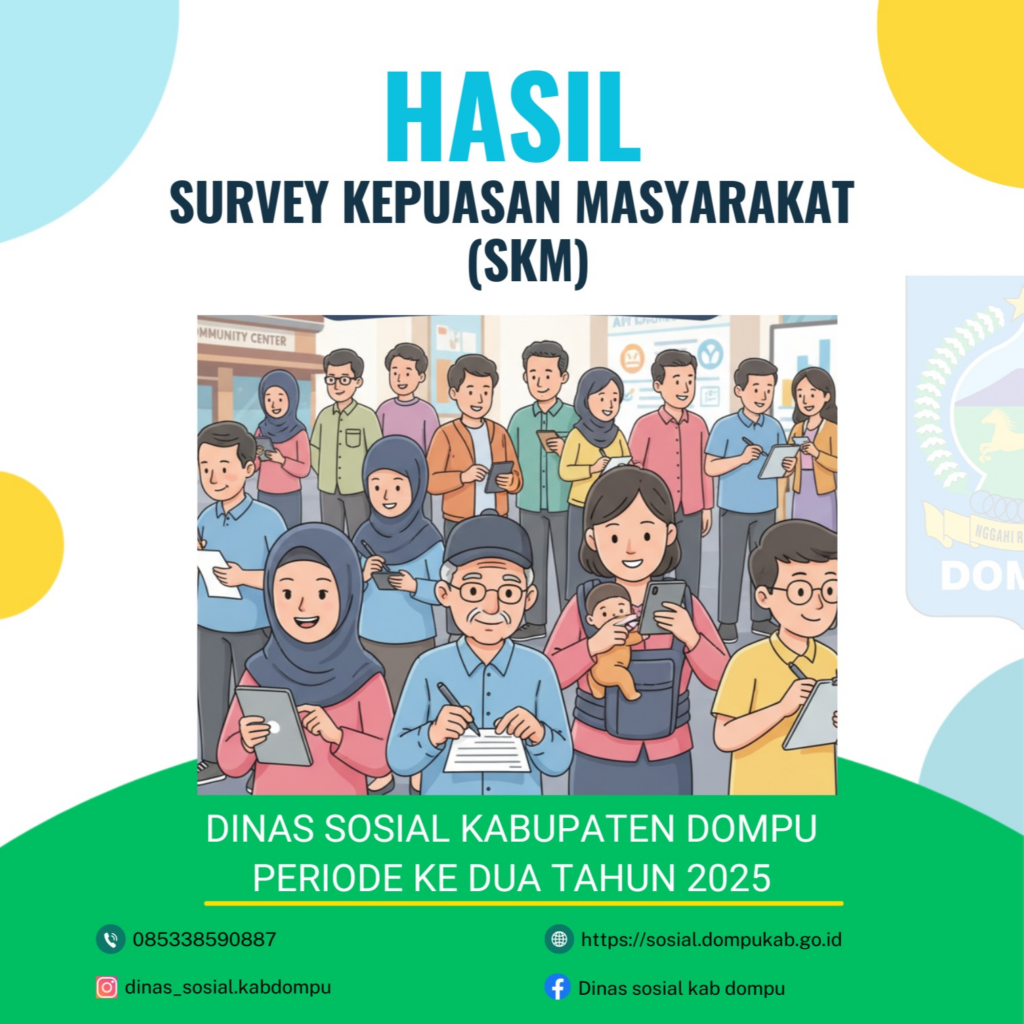 Dinas Sosial Kabupaten Dompu telah melaksanakan Survei Kepuasan Masyarakat (SKM) pada periode Juli hingga Oktober Tahun 2025 sebagai bentuk evaluasi serta peningkatan kualitas pelayanan publik bagi masyarakat. Survei ini diikuti oleh 364 responden yang merupakan pengguna langsung layanan pada unit pelayanan Dinas Sosial.